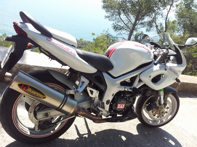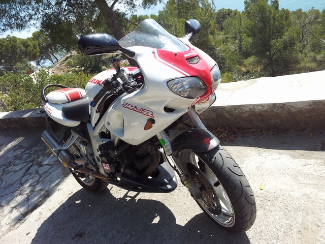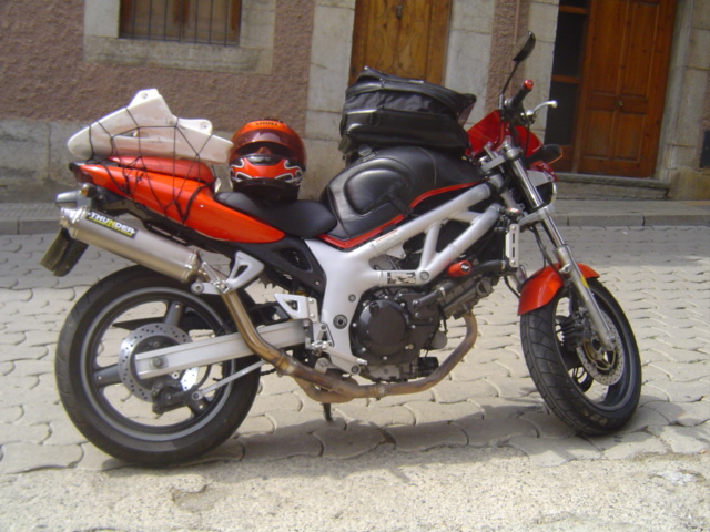 He tenido 2 sv's 650 carbu... a la primera era una naked roja, a la que le hice una transformación a s azul (gracias a un compi que quería comprar una naked y haciendo la transformación el seguiría con su "moto" y yo con la mia), luego la pinte de rosso ducati y hasta que me la vendí para poder tener poco mas tarde la que tengo actualmente muy modificada por cierto...ya lo podeis apreciar en las fotos (horquilla, discos, latiguillos, bomba brembo, escape con colectores, g-pack,...) pintada en blanco Suzuki y rosso ducati...