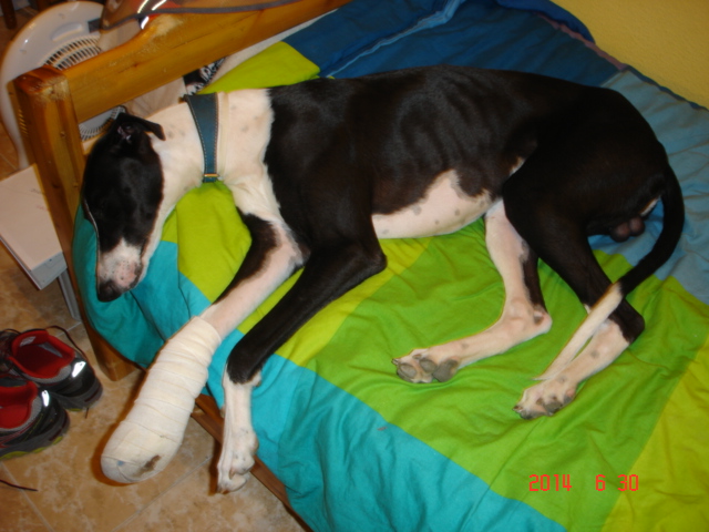 recuperación perfecta, según el veterinario desde ya mismo vida normal de galgo,, o sea correr y correr , joder que lagrimones me caian, cuando hace un rato lo he vuelto a ver, volar bajo en el campo,,,