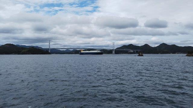 El famoso puente de Innoshima con el barquito chiquitito (txalupa txikito bat, de los Potrotaino)