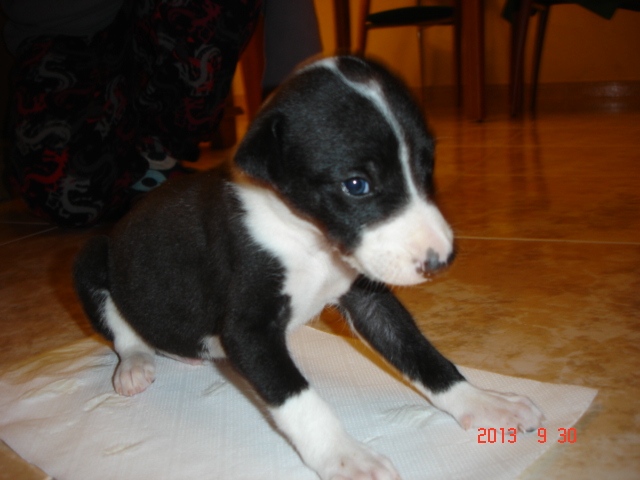 Hasta que tenga el mes y medio no verá más o menos bien, es como los recién nacidos. Aunque ya debería ver. Esto es común a cualquier raza. Lo que no sepa caminar, a todos los perros les cuesta andar sobre el terrazo de una vivienda, y a un cachorro de su edad más, tranquilo. Yo voy mucho a la manchuela, y allá hay mucho galguero, por lo he escuchado bastante de lesiones, roturas, enfermedades...
