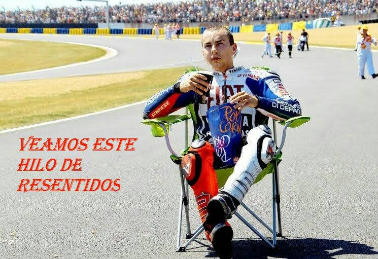 enricsv escribió:Vamos a retomar el tema del hilo coño, aqui se habla del ridiculo que esta haciendo el tal Lorenzo que se nota que gano los mundiales por que los demas estaban lisiaos, cuando han estado en forma ya no es ni el tercero, es el cuarto y como se descuide hasta Aleix y Dovi le daran pal pelo...