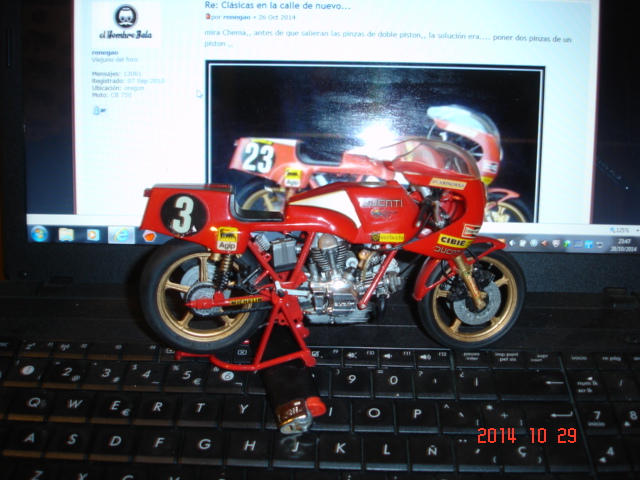 Preciosa la ducati renegao aunque es una maqueta es muy bonita igualmente. A vez si me pongo con la bultaco y la vendo para poder hacerme con una ducati clásica que es la que me gusta. Borinot te podrá informar :bien: