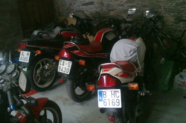 Cuatro RD350, 3 de ellas el modelo japo y una brasileña...y la RZV500R...aparte de impresionante, impecable.