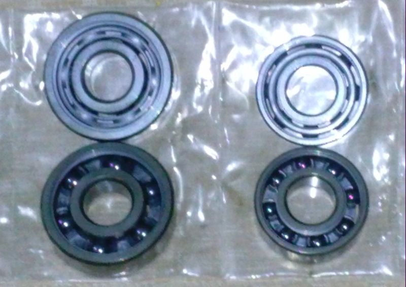 los rodamientos cerámicos son cojinetes normales con las pistas supercacabadas( superfinish), un pulido muuuy fino, y tratadas con una acabado superficial que reduce el rozamiento y mejora el trabajo del lubricante. Además llevan las bolas de un material cerámico que fabrica Saint-Gobain, CERBEC, que consigue esferas mucho más redondas que de acero, con menos rozamiento y que no sufren deformación con el calor.