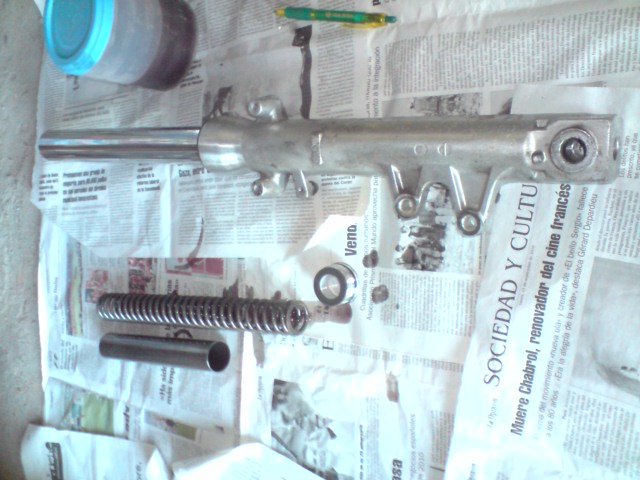 hola buenas como me estan pintado las tapas de la moto y he aprovecha a sacar los muelles de la horquilla.decir que el aceite parece estar en buen estado,no huele mal ni nada y parece denso.