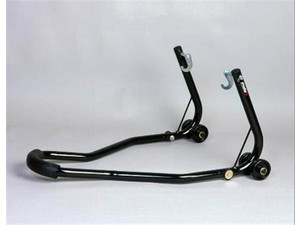 Haber mi humilde opinión, el de la fz8 esta guapísimo pero el que sale con la r1 lo veo un poco inútil, yo tengo una sv del 2005 y le tengo puesto el caballete de atrás que es muy útil para poder sacar la rueda trasera y hurgar por ahí pero el que sale con la r1 es básicamente lo mismo porque la rueda que deja suspendida es la de atrás y para levantar la de alante debes estar aciendo contrapeso o poner una pesa en el asiento trasero para que se quede levantada...........algo muy jodido si quieres quitar la rueda de alante y andar haciendo malabares.....como decía yo sólo tengo el caballete de atrás como el que pongo e la imagen y me costó 60 pavos, y por el mismo precio creo que también tienes el de alante.
