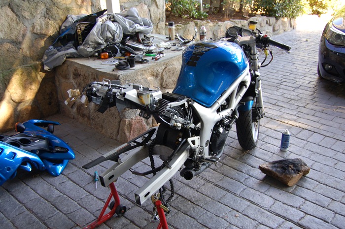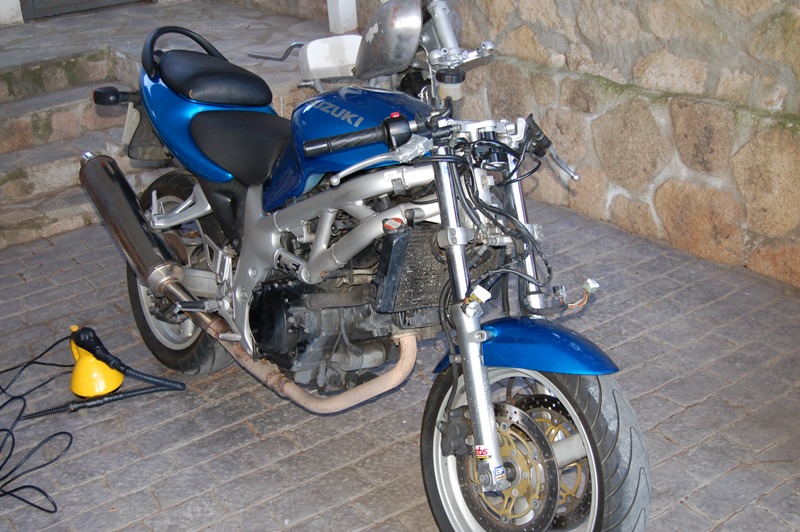 Jejeje, la Yamaha la tengo aparcada...cuando ya estaba con las "fibras" al probar la posición no entraba en la moto (mido 1,90) así que ahí se quedó aparcado...