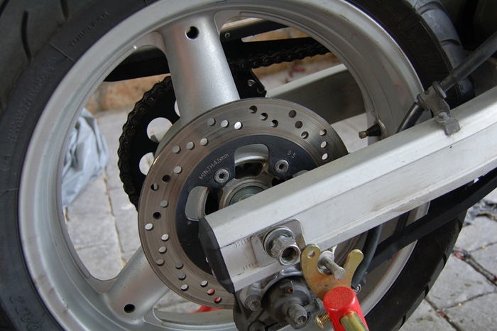 detalle disco freno trsero pintado y montado (falta pulir tornillos)