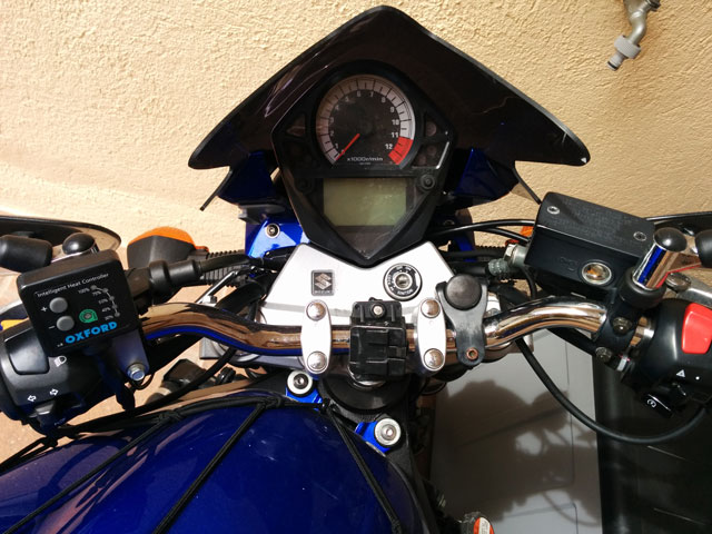 Hombre, el problema es que llevas demasiadas cosas! jajaja Yo me agobiaría con tantas cosas en el manillar... el GPS lo entiendo si haces viajes largos o habitualmente a sitios que desconoces, pero el cargador de mechero y todo? en la moto? y los puños calefactables bueno, por necesidad, pero pondría el mando en un sitio más discreto aunque esté menos a mano, también accesible.
