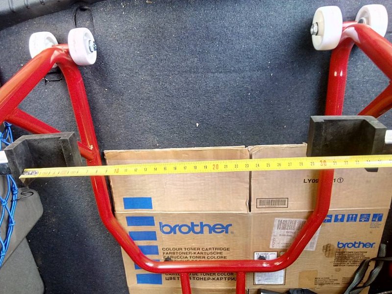 Fotos en vivo, con cinta métrica en mano. Ya véis que los soportes están sacados al límite (yo no pondría la moto ahí en esas circunstancias), y aún así pide unos 34 cm, cuando el basculante hace unos 31 ...