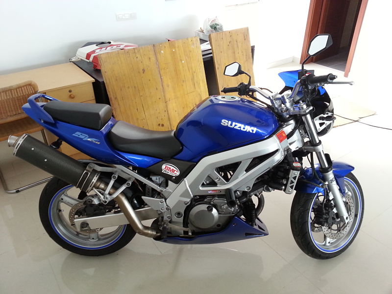 Buenas a todos, soy Alejandro, de Tenerife y acabo de comprar una SV650 K3. Llevo tiempo siguiendo el foro informandome sobre esta maravilla y por fin soy poseedor de una. Ahora mismo la tengo en el taller esperando por la limitación para el A2 ya que lo tengo desde hace menos de dos años. Tengo moto desde los 5 años, cuando mi padre me regalo por reyes una Honda QR 50 que aún poseo, y desde entonces, algunas minimotos despues, a los 16 años me saque el A1 y tuve una Sachs XTC 125 y una Yamaha XT125X. He llevado una KTM 525 de supermotard en el karting por aquí y alguna otra moto más en sitios cerrados, y por fin despues de sacarme el A2 y varios meses ahorrando, la moto que me tenía enamorado desde hace tiempo, la SV.
