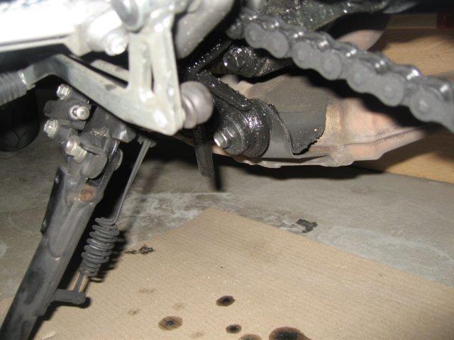 Parece que la sangre no llegará al río, es muy posible que todo sea por un exceso de lubricación de la cadena y que por eso lo manche todo...., toca limpieza de las partes sucias, que ya veré cómo lo hago pues demasiado accesible tampoco es que sea, sin caballete central y sin forma de levantar la moto, ya veré si con un gato, ya veré, pero que al final todo ha quedado ahí.