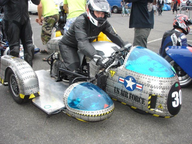 en francia es autentica devocion la que tienen por los sidecares , tanto los de carreras , como para ir por la calle, es muy habitual ver a familias de cuatro componentes todos en el sidecar