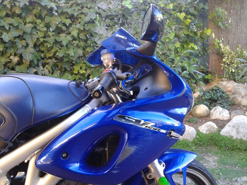 Yo iba a por una CB600F (La hornet, vamos...) pero un buen colega mecánico me dejo caer la idea de pillarme una SV650S por tema peso y facilidad a la hora de llevarla. Tras mirar bastante encontré esta con 44000km, propietario único y un huevaco de extras: guardabarros delantero modificado, cúpula puig, intermitentes rizoma, bomba de freno delantero brembo, muelles de suspension delanteros Öhlins, horquilla modificada, semimanillares, asientos bagster personalizados, el tubarro thunder, paso de rueda y cubrecadena personalizado... Y por 1800 pavos acabé pillandola jajaja. La limité y durante el mes y pico que la he llevado me ha sorprendido gratamente. (Supongo que al cambiar de una SR a una SV se ha de notar por cojones)